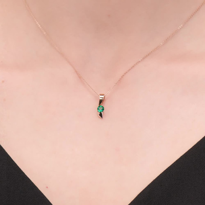 Подвеска с 1 гидротермальным изумрудом, 0.23 карат; Розовое золото 585 пробы.