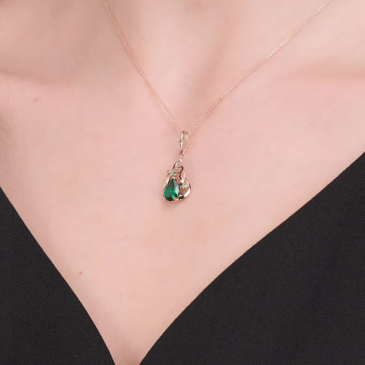 Подвеска с 1 гидротермальным изумрудом, 0.93 карат; 1 гидротермальным изумрудом, 0.01 карат; 4 гидротермальными изумрудами, 0.03 карат; Розовое золото 585 пробы.