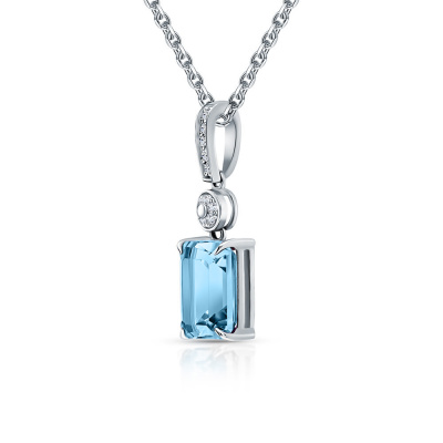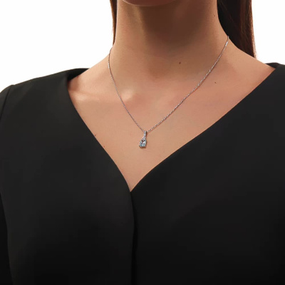 Подвеска с 10 бриллиантами природными, 0.04 карат, огранка круг 17 граней, цвет 2, чистота 2, тип огранки Б; 1 топазом скай природным, 1.89 карат; Белое золото 585 пробы.