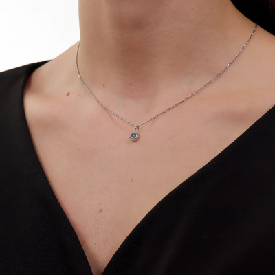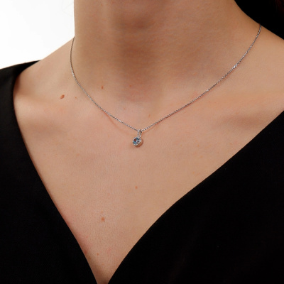 Подвеска с 17 бриллиантами природными, 0.04 карат, огранка круг 17 граней, цвет 2, чистота 2, тип огранки А; 1 топазом свисс природным, 0.3 карат; Белое золото 585 пробы.