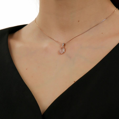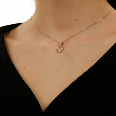 Подвеска с 3 бриллиантами природными, 0.006 карат, огранка круг 17 граней, цвет 2, чистота 2, тип огранки А; 3 бриллиантами природными, 0.005 карат, огранка круг 17 граней, цвет 2, чистота 2, тип огранки А; 1 кварцем розовым природным, 2.54 карат, тип огранки Б; Розовое золото 585 пробы.