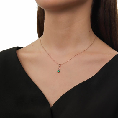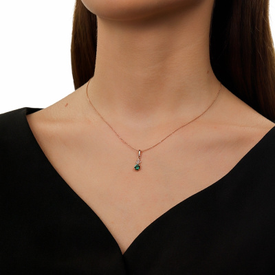 Подвеска с 1 бриллиантом природным, 0.007 карат, огранка круг 17 граней, цвет 2, чистота 2, тип огранки А; 1 гидротермальным изумрудом, 0.39 карат; Розовое золото 585 пробы.