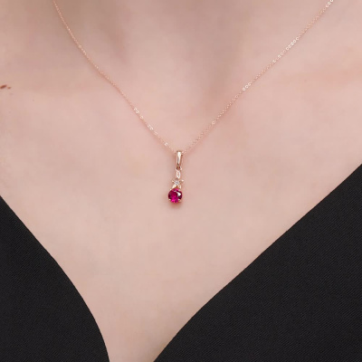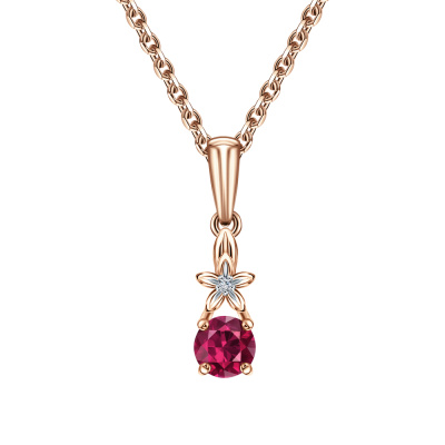 Подвеска с 1 бриллиантом природным, 0.007 карат, огранка круг 17 граней, цвет 2, чистота 2, тип огранки А; 1 рубином синтетическим, 0.59 карат; Розовое золото 585 пробы.
