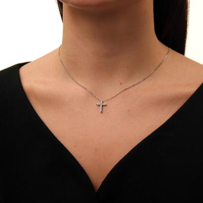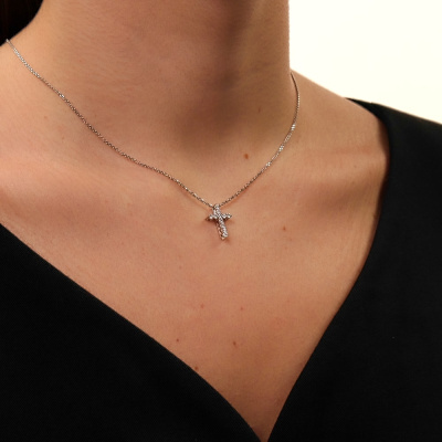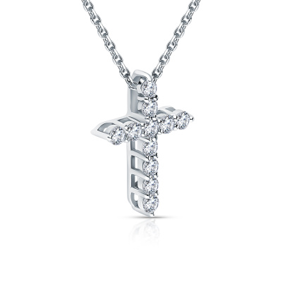 Подвеска с 11 бриллиантами природными, 0.33 карат, огранка круг 57 граней, цвет 3, чистота 6, тип огранки А; Белое золото 585 пробы.