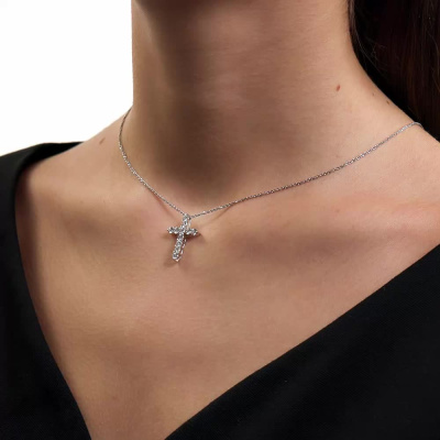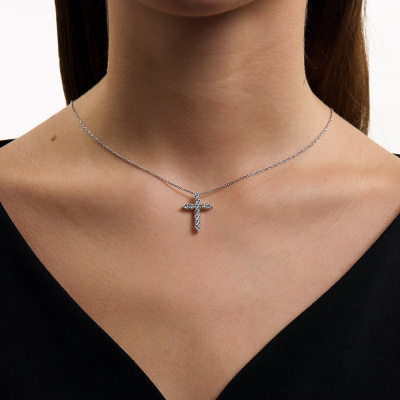 Подвеска с 11 бриллиантами природными, 0.86 карат, огранка круг 57 граней, цвет 4, чистота 6, тип огранки А; Белое золото 585 пробы.
