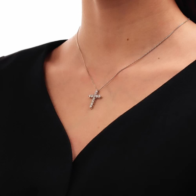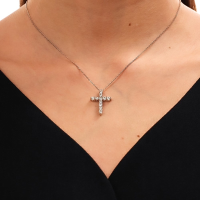 Подвеска с 11 бриллиантами природными, 1.13 карат, огранка круг 57 граней, цвет 3, чистота 6, тип огранки А; Белое золото 585 пробы.