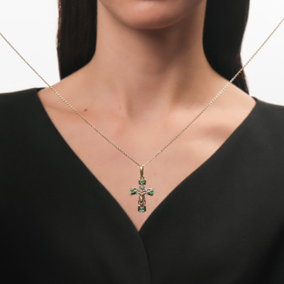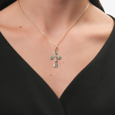 Золотой крест-подвеска с природными изумрудами