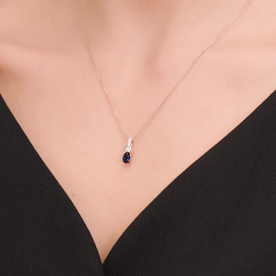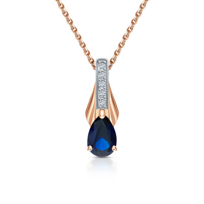 Подвеска с 5 бриллиантами природными, 0.02 карат, огранка круг 17 граней, цвет 2, чистота 2, тип огранки А; 1 сапфиром синтетическим, 0.47 карат; Розовое золото 585 пробы.