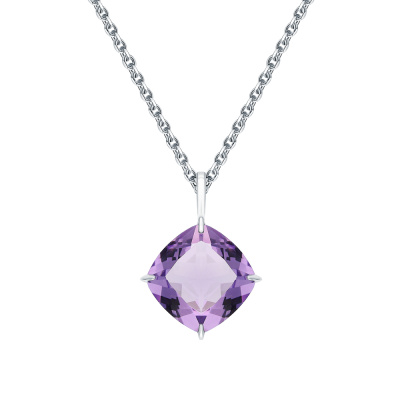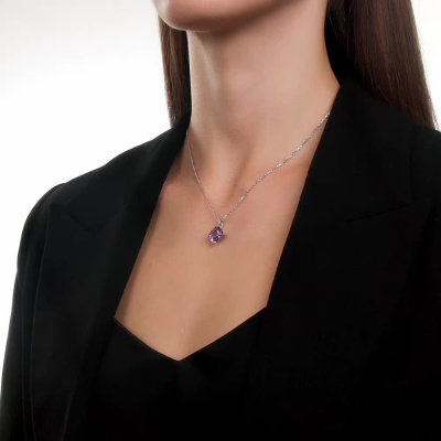 Подвеска с 1 аметистом природным, 3.37 карат; Белое золото 585 пробы.