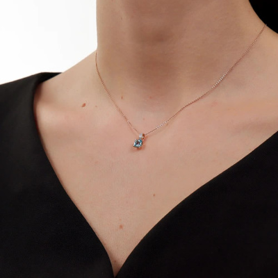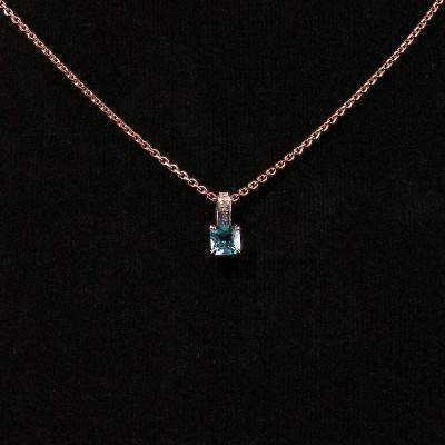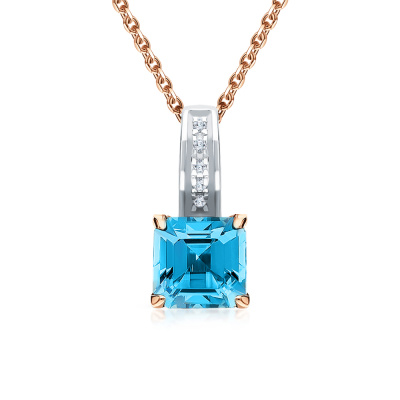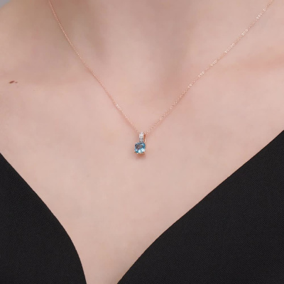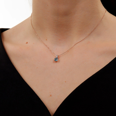 Подвеска с 5 бриллиантами природными, 0.009 карат, огранка круг 17 граней, цвет 2, чистота 2, тип огранки А; 1 топазом свисс природным, 0.68 карат; Розовое золото 585 пробы.