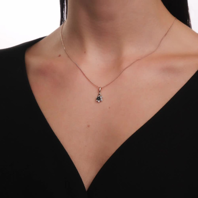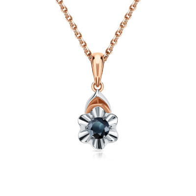 Подвеска с 1 сапфиром природным, 0.27 карат, цвет 2, чистота 2, тип огранки В; Розовое и белое золото 585 пробы.