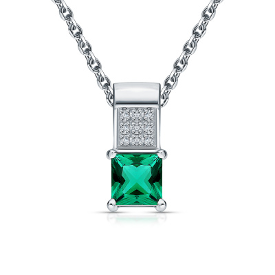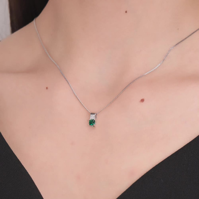 Подвеска с 9 бриллиантами природными, 0.01 карат, огранка круг 17 граней, цвет 2, чистота 2, тип огранки А; 1 гидротермальным изумрудом, 0.29 карат, тип огранки Б; Белое золото 585 пробы.