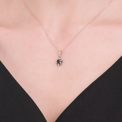 Подвеска с 6 бриллиантами природными, 0.03 карат, огранка круг 17 граней, цвет 2, чистота 2, тип огранки Б; 1 сапфиром природным, 0.2 карат, цвет 2, чистота 2, тип огранки Б; Розовое и белое золото 585 пробы.