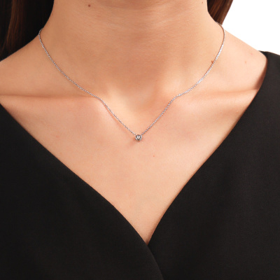 Подвеска с 1 бриллиантом природным, 0.004 карат, огранка круг 17 граней, цвет 2, чистота 2, тип огранки А; Белое золото 585 пробы.
