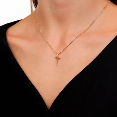 Подвеска с 1 изумрудом природным, 0.05 карат, цвет 3, чистота 3; Желтое золото 585 пробы.