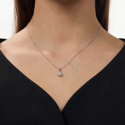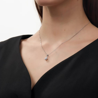 Подвеска с 1 бриллиантом природным, 0.04 карат, огранка круг 57 граней, цвет 3, чистота 6, тип огранки А; 8 бриллиантами природными, 0.05 карат, огранка круг 57 граней, цвет 3, чистота 6, тип огранки А; 16 бриллиантами природными, 0.07 карат, огранка круг 57 граней, цвет 3, чистота 6, тип огранки А; Белое золото 585 пробы.
