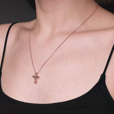 Подвеска с 11 бриллиантами природными, 0.38 карат, огранка круг 57 граней, цвет 3, чистота 6, тип огранки А; Розовое золото 585 пробы.