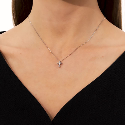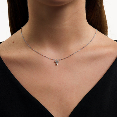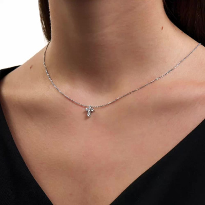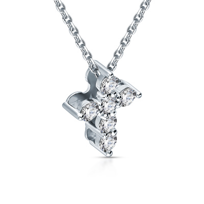 Подвеска с 6 бриллиантами природными, 0.25 карат, огранка круг 57 граней, цвет 3, чистота 6, тип огранки А; Белое золото 585 пробы.