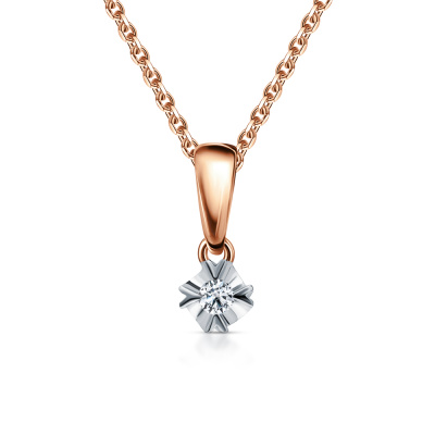 Подвеска с 1 бриллиантом природным, 0.02 карат, огранка круг 57 граней, цвет 3, чистота 6, тип огранки А; Розовое золото 585 пробы.