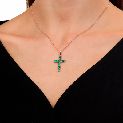 Золотая подвеска с изумрудами выращенными