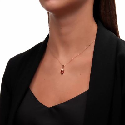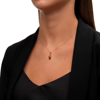 Подвеска с 1 янтарем коричневым природным, 0.8 карат; Розовое золото 585 пробы.