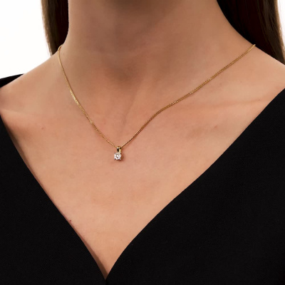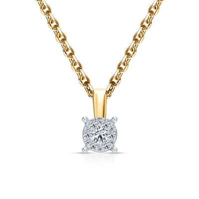 Подвеска с 1 бриллиантом природным, 0.04 карат, огранка круг 57 граней, цвет 3, чистота 5, тип огранки А; 6 бриллиантами природными, 0.06 карат, огранка круг 57 граней, цвет 3, чистота 5, тип огранки А; 6 бриллиантами природными, 0.01 карат, огранка круг 57 граней, цвет 3, чистота 5, тип огранки А; Желтое золото 585 пробы.
