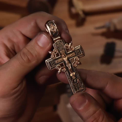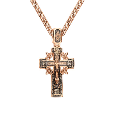 На лицевой стороне православного креста изображено Распятие Господа Иисуса Христа. На ушке креста изображен шестикрылый ангел-Серафим. На обороте креста написаны начальные строки молитвы Четсному Кресту Господню. Эту молитву читают, а также носят при себе для защиты от злых сил.