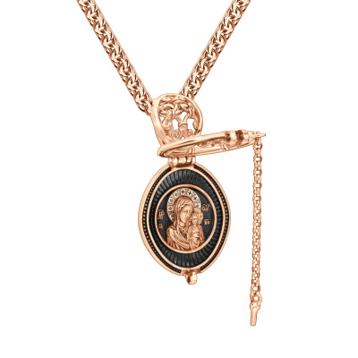 Образок с изображением иконы Казанской Божией Матери. На обороте подвески написаны строки из молитвы Казанской Божией Матери.