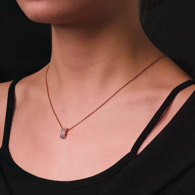 Подвеска с 17 бриллиантами природными, 0.05 карат, огранка круг 17 граней, цвет 2, чистота 2, тип огранки А; Розовое золото 585 пробы.