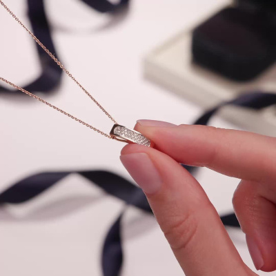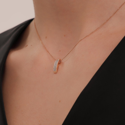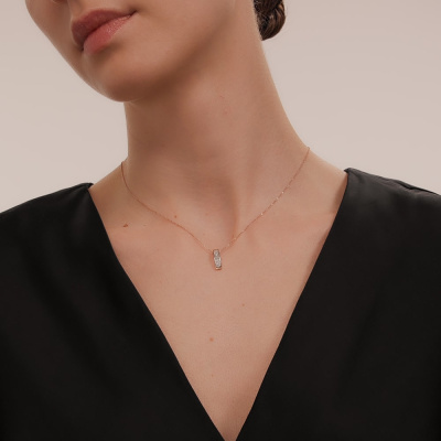 Подвеска с 31 бриллиантом природным, 0.07 карат, огранка круг 17 граней, цвет 2, чистота 2, тип огранки А; Розовое золото 585 пробы.