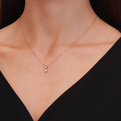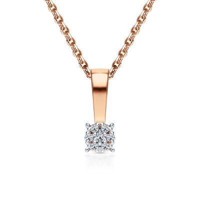 Подвеска с 1 бриллиантом природным, 0.007 карат, огранка круг 57 граней, цвет 3, чистота 6, тип огранки А; 6 бриллиантами природными, 0.02 карат, огранка круг 17 граней, цвет 2, чистота 2, тип огранки А; Розовое золото 585 пробы.