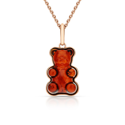 Подвеска с 1 янтарем коричневым природным, 1.9 карат; Розовое золото 585 пробы.