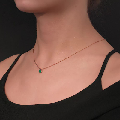 Подвеска с 1 агатом зеленым природным; Розовое золото 585 пробы.