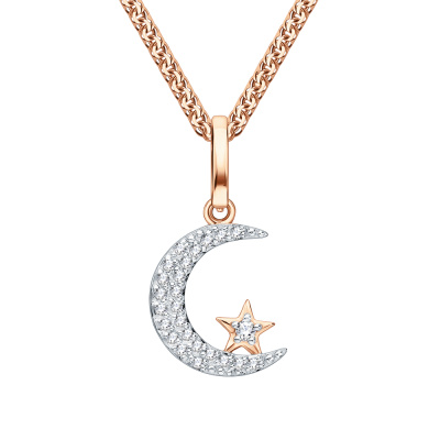 Подвеска с 1 бриллиантом природным, 0.01 карат, огранка круг 57 граней, цвет 4, чистота 5, тип огранки А; 24 бриллиантами природными, 0.07 карат, огранка круг 57 граней, цвет 4, чистота 5, тип огранки А; Розовое золото 585 пробы.
