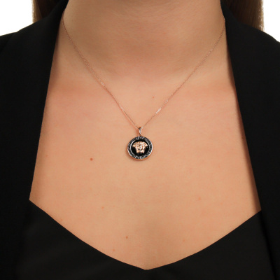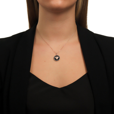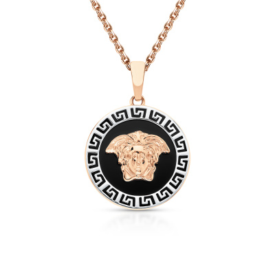 Подвеска с 1 ониксом черным природным; Розовое золото 585 пробы.
