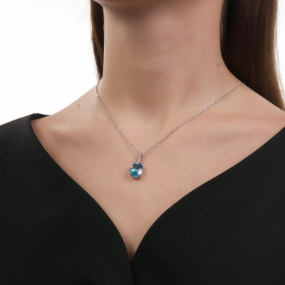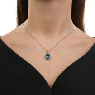 Подвеска с 7 бриллиантами природными, 0.02 карат, огранка круг 17 граней, цвет 2, чистота 2, тип огранки А; 1 топазом свисс природным, 6.76 карат; Белое золото 585 пробы.