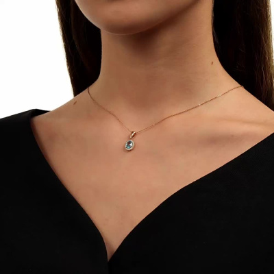 Подвеска с 20 бриллиантами природными, 0.08 карат, огранка круг 17 граней, цвет 2, чистота 2, тип огранки А; 1 топазом свисс природным, 0.79 карат; Розовое золото 585 пробы.