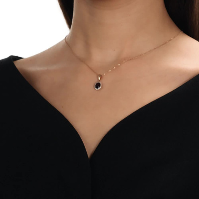 Подвеска с 20 бриллиантами природными, 0.08 карат, огранка круг 17 граней, цвет 2, чистота 2, тип огранки А; 1 гранатом природным, 0.92 карат; Розовое золото 585 пробы.