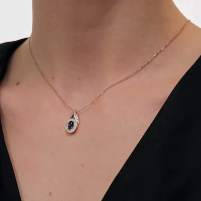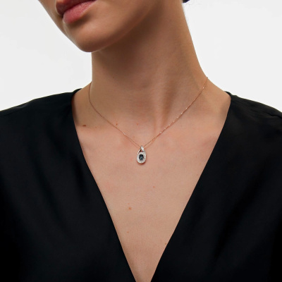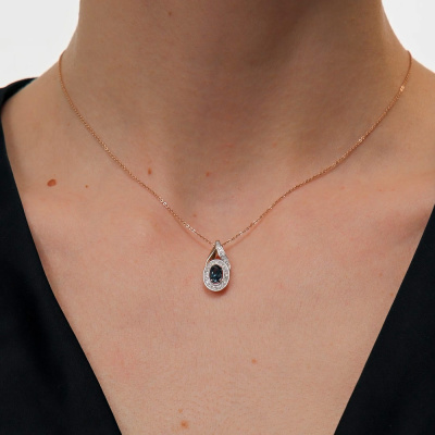 Подвеска с 23 бриллиантами природными, 0.1 карат, огранка круг 17 граней, цвет 2, чистота 2, тип огранки А; 4 бриллиантами природными, 0.007 карат, огранка круг 17 граней, цвет 2, чистота 2, тип огранки А; 1 топазом лондон природным, 0.5 карат; Розовое золото 585 пробы.