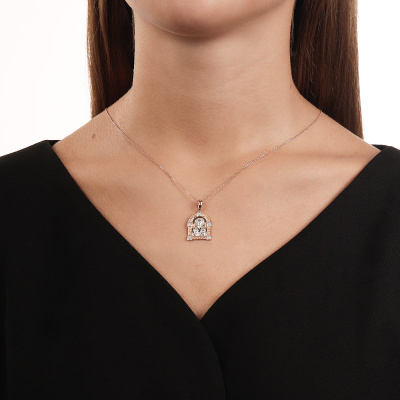 Подвеска с 5 бриллиантами природными, 0.009 карат, огранка круг 17 граней, цвет 2, чистота 2, тип огранки А; Розовое золото 585 пробы.