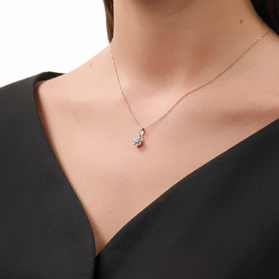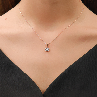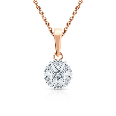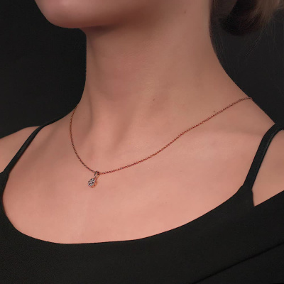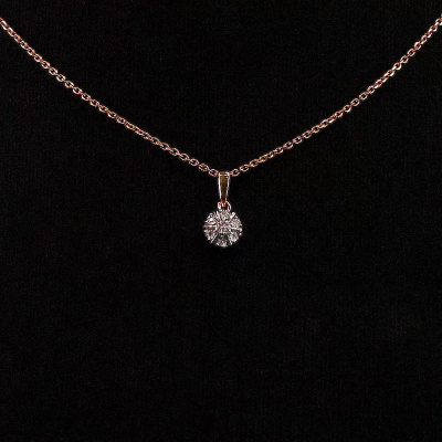 Подвеска с 3 бриллиантами природными, 0.02 карат, огранка круг 57 граней, цвет 3, чистота 6, тип огранки А; 6 бриллиантами природными, 0.01 карат, огранка круг 17 граней, цвет 2, чистота 2, тип огранки А; Розовое и белое золото 585 пробы.