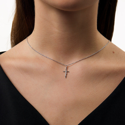 Платиновый крест-подвеска с бриллиантом