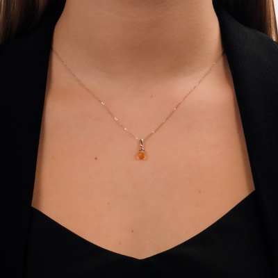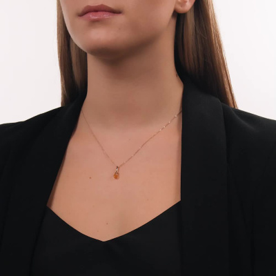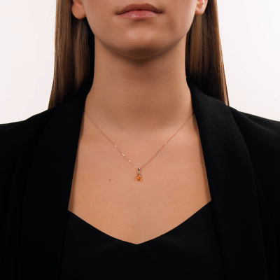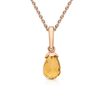 Подвеска с 1 цитрином природным, 1.24 карат, огранка бриолет капля; Розовое золото 585 пробы.