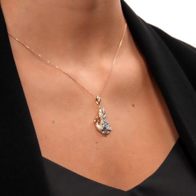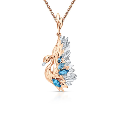 Подвеска с 2 топазами свисс природными, 0.54 карат; 1 топазом свисс природным, 0.17 карат; 1 топазом свисс природным, 0.09 карат; 8 топазами бесцветными природными, 0.08 карат; 4 топазами бесцветными природными, 0.02 карат; Розовое и белое золото 585 пробы.