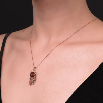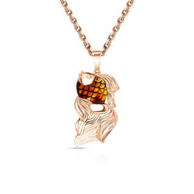 Подвеска с 1 янтарем коричневым природным, 1.2 карат; Розовое золото 585 пробы.