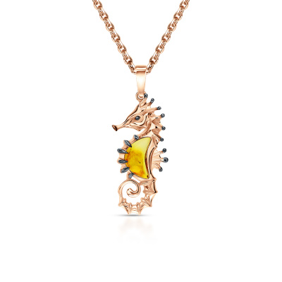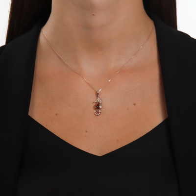 Подвеска с 1 янтарем коричневым природным, 0.48 карат; Розовое золото 585 пробы.