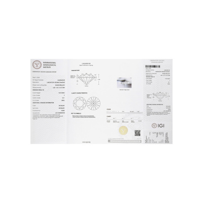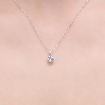 Подвеска с 1 бриллиантом выращенным, 1.01 карат, огранка круг 57 граней, цвет 4, чистота 5, тип огранки А; Белое золото 585 пробы.