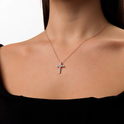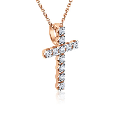 Подвеска с 11 бриллиантами выращенными, 0.64 карат, огранка круг 57 граней, цвет 3, чистота 6, тип огранки А; Розовое золото 585 пробы.