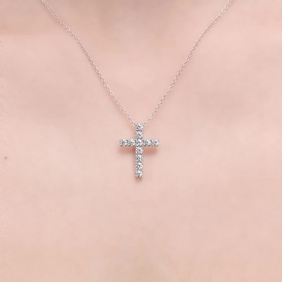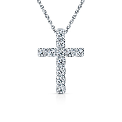 Подвеска с 11 бриллиантами выращенными, 0.99 карат, огранка круг 57 граней, цвет 3, чистота 6, тип огранки А; Белое золото 585 пробы.