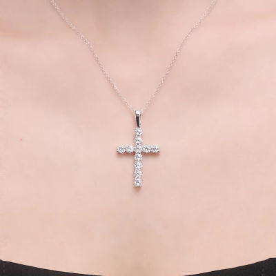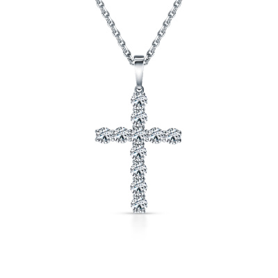 Подвеска с 11 бриллиантами выращенными, 2.63 карат, огранка круг 57 граней, цвет 3, чистота 5, тип огранки А; Белое золото 585 пробы.